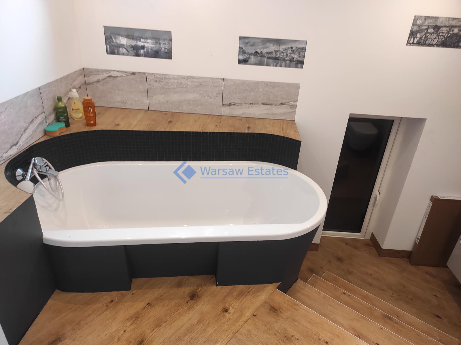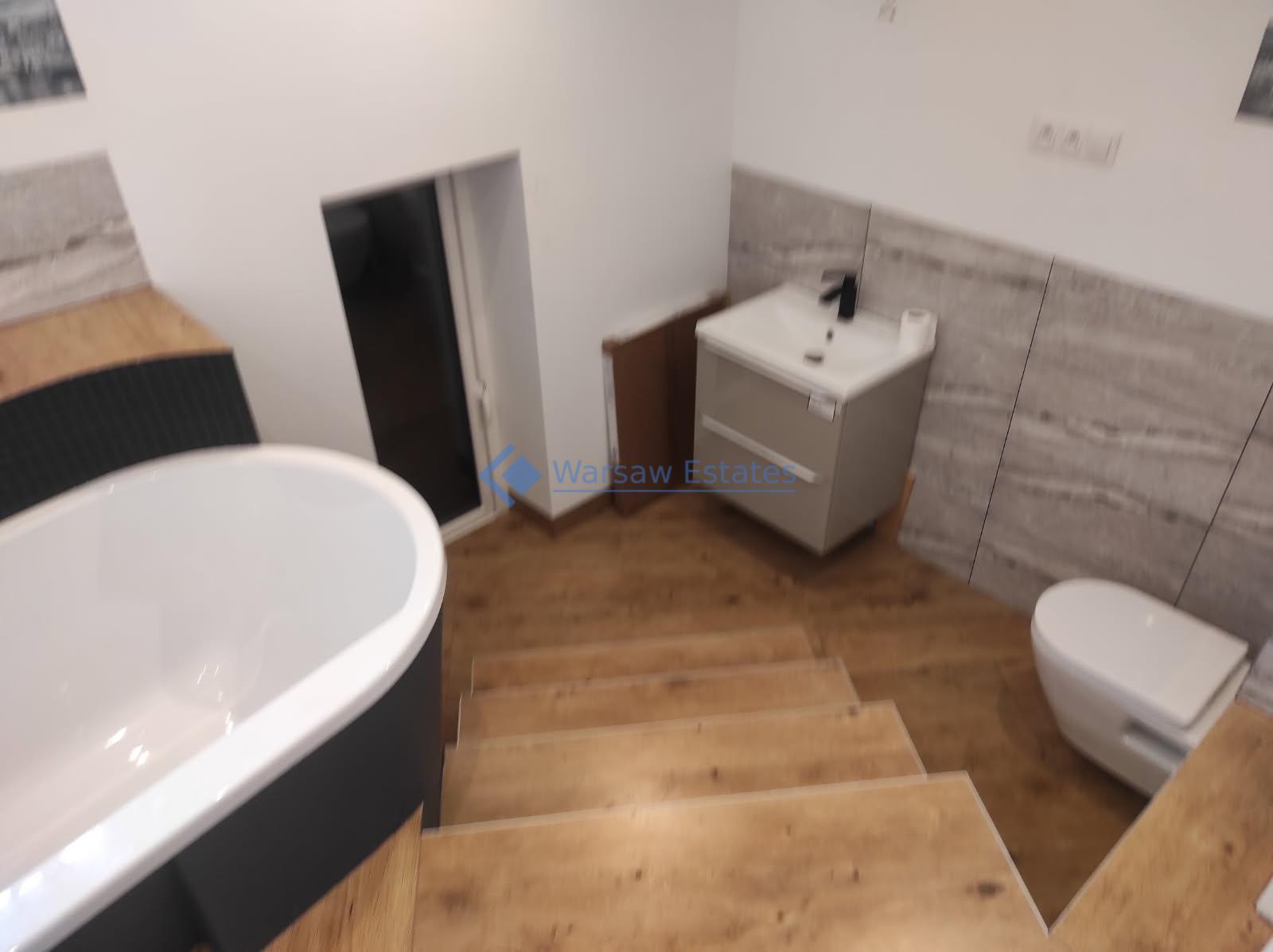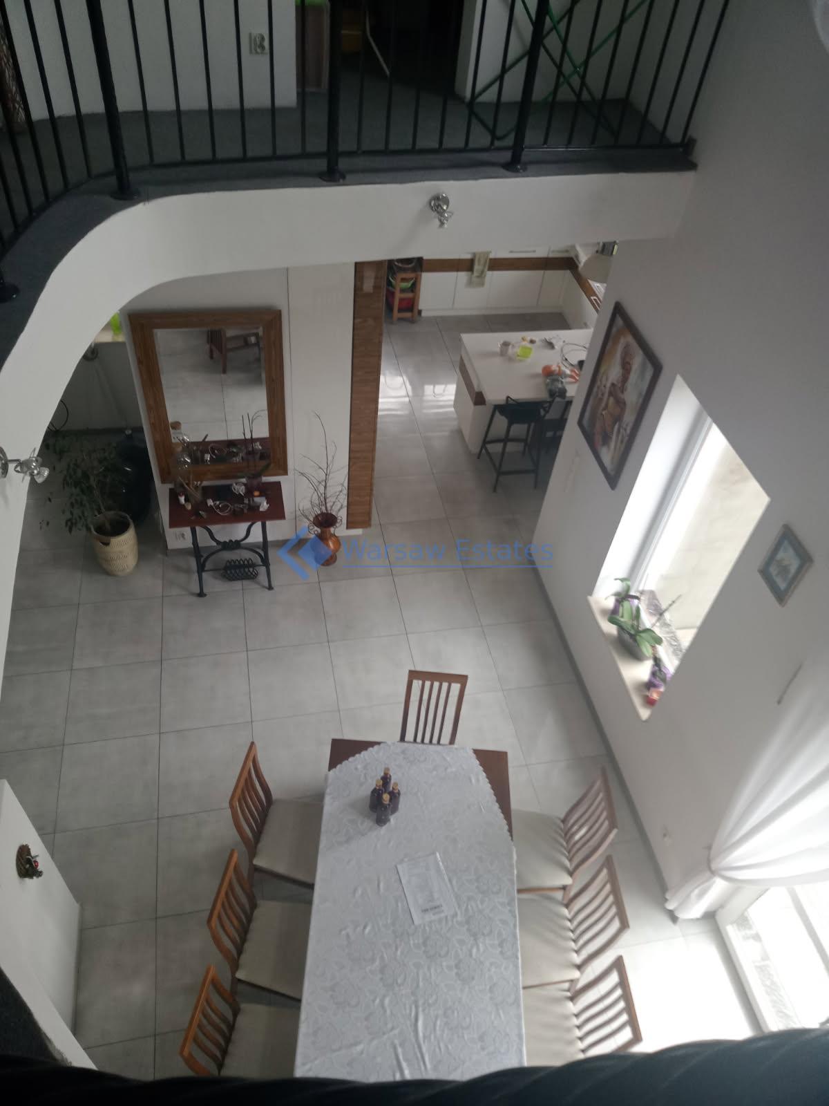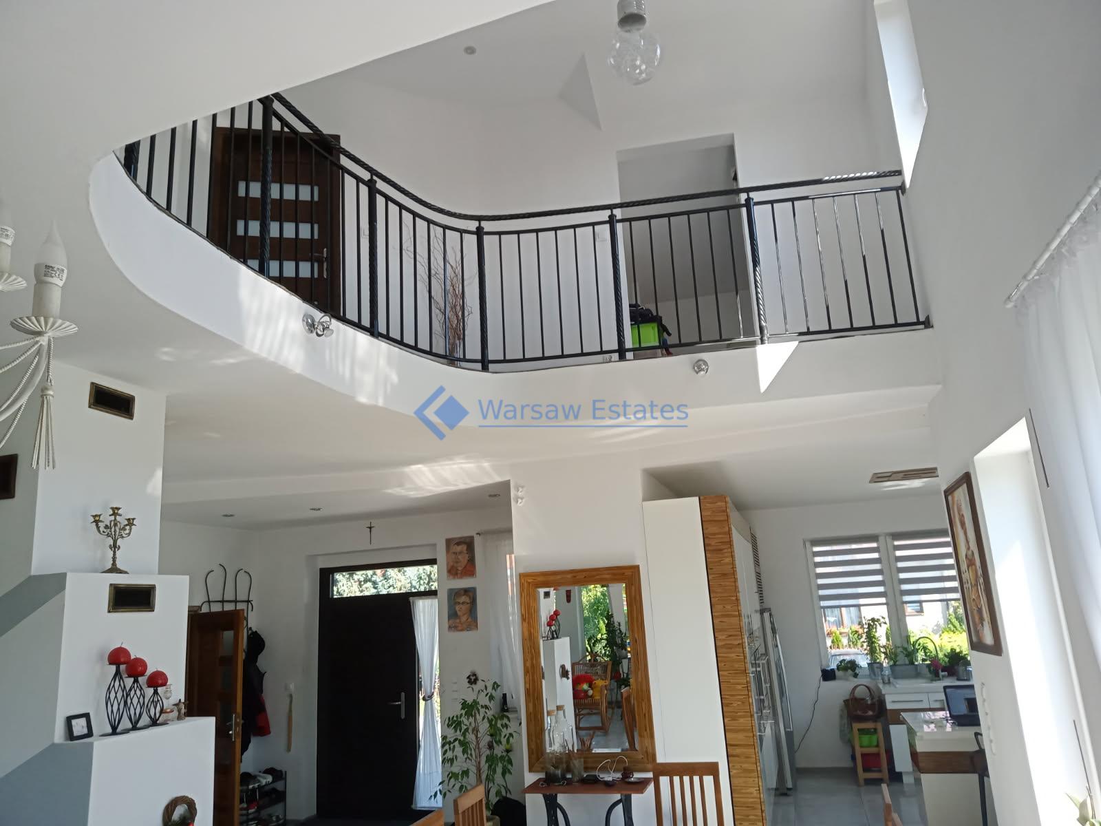 Na 2 kondygnacji tj. parterze znajduje się duży salon wraz z ANTRESOLA nad salonem- wspaniale podkreśla wyjątkowość tego domu oraz dwustronny kominek. Wszystko połączone z kuchnią, pokój, łazienka oraz garaż. Kondygnację wyżej na poddaszu użytkowym są trzy pokoje, 2 garderoby, 2 łazienki oraz pralnio – suszarnia.